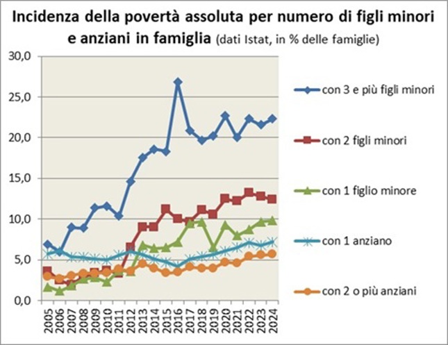 I diversi livelli di povertà assoluta per numero di figli minori e anziani in famiglia