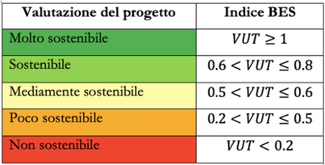 L’Analisi del Valore di Utilità (AVU) di un progetto si articola nelle seguenti fasi: (i) Determinazione dei criteri di valutazione; (ii) Ponderazione di ciascun criterio; (iii) Calcolo dei valori di utilità parziale; (iv) Calcolo del valore di utilità complessivo. La determinazione dei criteri richiede un’attenta strutturazione e analisi del sistema di valutazione a seconda della tipologia del progetto. Nel DSS proposto dalla sperimentazione Unitus-NUVV si sono ipotizzati al massimo 6 criteri per gli aspetti di sostenibilità ambientale; al massimo 3 criteri per gli aspetti di sostenibilità sociale; al massimo 3 criteri per gli aspetti di sostenibilità economica.